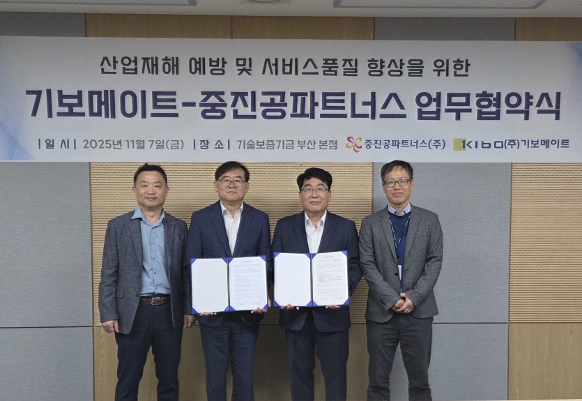 중진공파트너스(주)는 2025년 11월 7일 (주)기보메이트와 상호 업무협력 증진을 위한 MOU를 체결했습니다!