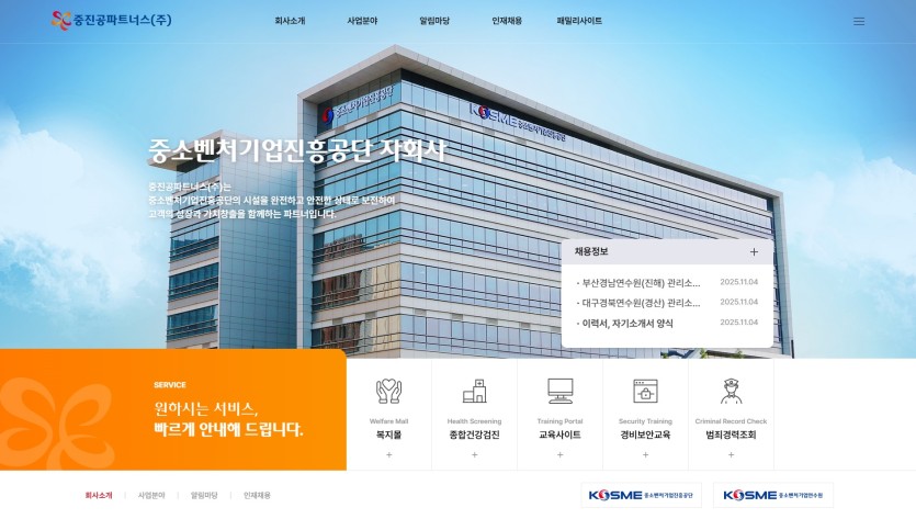 [안내] 중진공파트너스(주) 홈페이지 리뉴얼 오픈 안내 페이지 정보 최고관리자 2025-11-04 160 회 0 건 본문 중진공파트너스(주) 공식 홈페이지가 새롭게 리뉴얼되었습니다.PC와 모바일 환경 모두에 최적화되어 더욱 편리하게 이용하실 수 있으니,새로운 홈페이지에 많은 관심과 방문을 부탁드립니다. 이전글[홍보] 중소벤처기업진흥공단 25.5월 사내보에 소개된 회사 소식 목록 댓글 0 댓글목록 등록된 댓글이 없습니다.