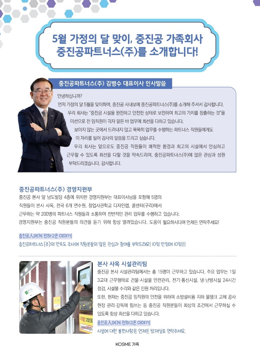 [홍보] 중소벤처기업진흥공단 25.5월 사내보에 소개된 회사 소식 페이지 정보 최고관리자 2025-11-06 438 회 0 건 본문 모회사의 사내보에 중진공파트너스(주) 경영지원부와 진주사옥의 주요 업무와 다채로운 활동이 자세히 소개되었습니다. 이전글[홍보] 25년 상반기 진주사옥 사회공헌 활동 다음글[안내] 중진공파트너스(주) 홈페이지 리뉴얼 오픈 안내 목록 댓글 0 댓글목록 등록된 댓글이 없습니다.
